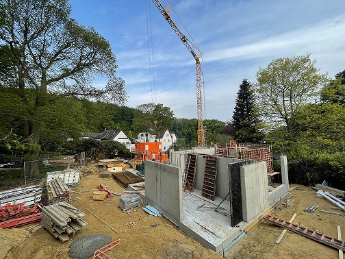 Derzeit werden Wände im Erdgeschoss eingeschalt und betoniert.