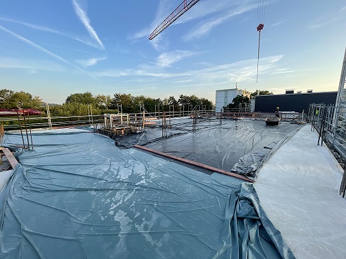 Ebenfalls fertiggestellt ist die Decke über dem 2. OG. Die Arbeitsräume sind verfüllt.