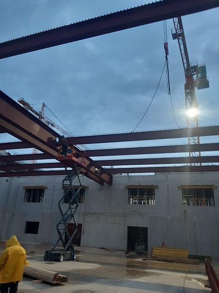 Der Rohbau der neuen Zweifach-Sporthalle ist bald abgeschlossen.