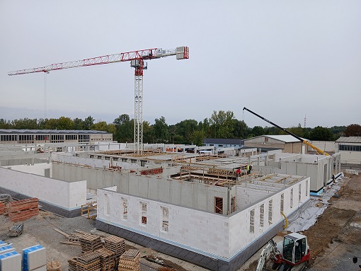 Es folgt die Schalung der Unterzüge sowie die Verlegung der Filigrandeckenplatten.