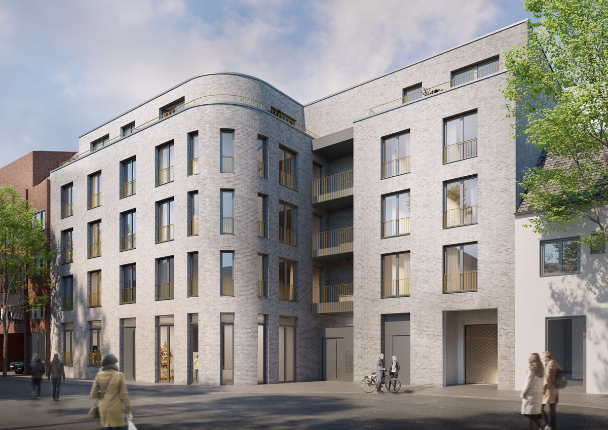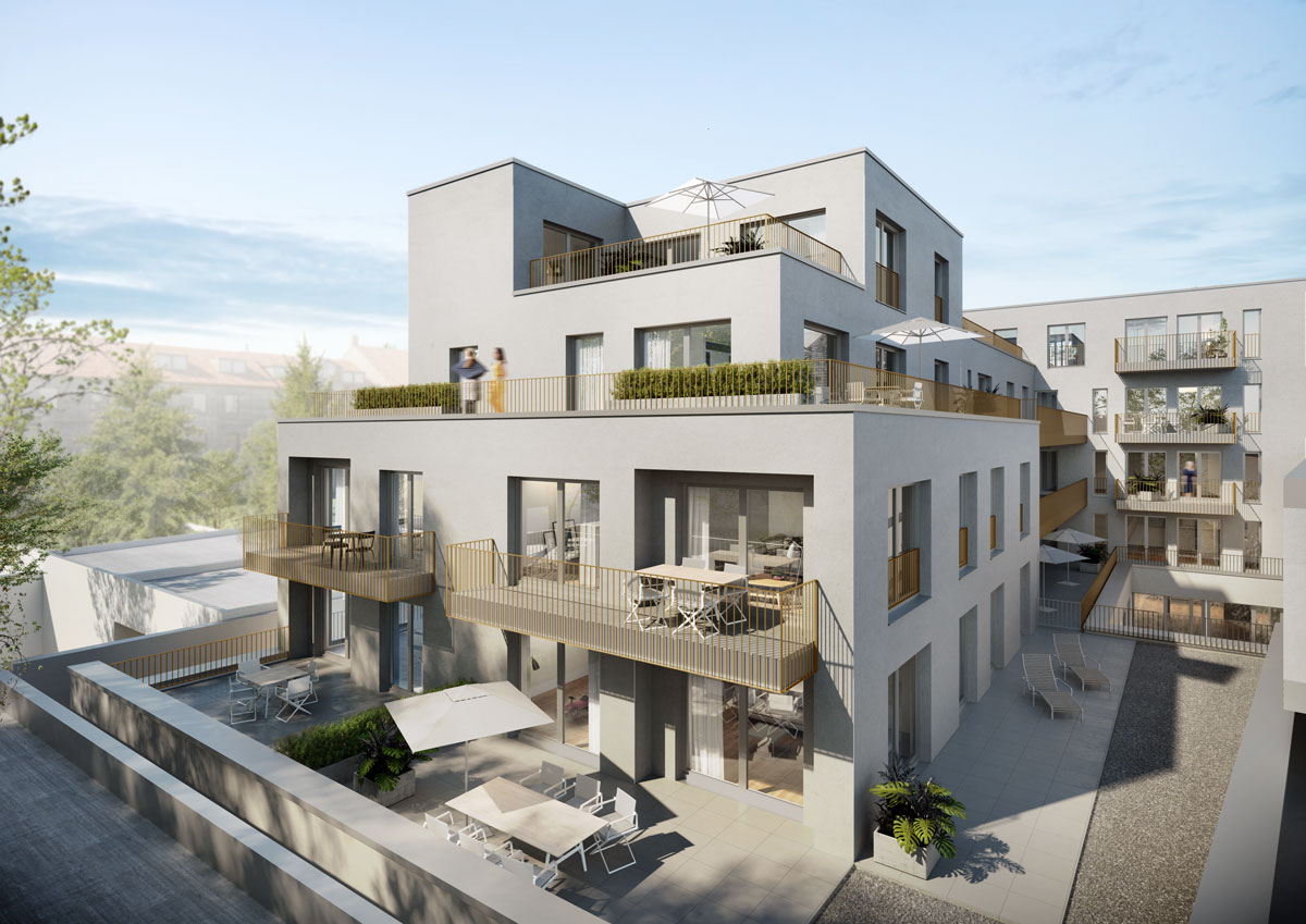 Die Scherenfabrik Schlenter ist seit 1859 in Aachen beheimatet. Den Standort in der Oligsbendengasse gab die J. SCHLENTER & Cie. zugunsten einer erweiterbaren und moderneren Produktionsstätte auf. Wir nutzen die zwischen „WOF 1“ und Fendel & Keuchen freigewordene Fläche für einen Wohnungsneubau in urbaner Lage – und dennoch ruhig gelegen.