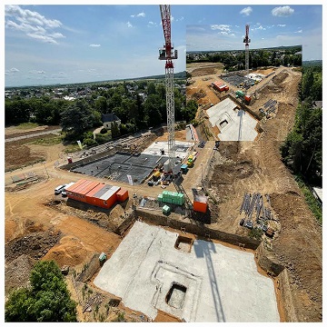 Hier entstehen drei Mehrfamilienhäuser mit gemeinsamer Tiefgarage.