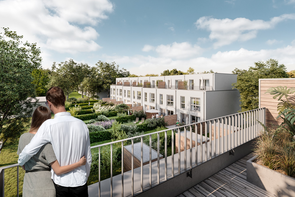 Das großzügige und mit großen Bäumen bestandene Grundstück wird auf seinen beiden Straßenfronten mit zwei Häuserreihen von je 5 und 7 Häusern gefasst. Hierdurch entsteht auf der nach Süden ausgerichteten Grünfläche ein geschützter Bereich mit hoher Aufenthaltsqualität und viel Platz. Alle Häuser werden energieeffizient und nachhaltig im Standard KfW 55EE errichtet. Die Häuser in der Pützdrieschstraße erhalten im Haus integrierte Garagen und einen voll nutzbaren Keller. Von den Dachterrassen aus hat man einen herrlichen Blick ins Grüne. Die nächste Einkaufsmöglichkeit ist in lediglich 5 Fußminuten erreichbar und auch die nächste Autobahnauffahrt nach Aachen und Düsseldorf ist nur 4 Autominuten entfernt.