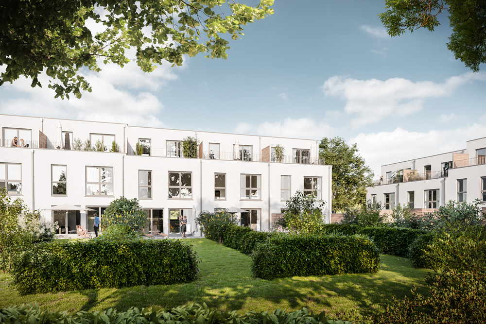Das großzügige und mit großen Bäumen bestandene Grundstück wird auf seinen beiden Straßenfronten mit zwei Häuserreihen von je 5 und 7 Häusern gefasst. Hierdurch entsteht auf der nach Süden ausgerichteten Grünfläche ein geschützter Bereich mit hoher Aufenthaltsqualität und viel Platz. Alle Häuser werden energieeffizient und nachhaltig im Standard KfW 55EE errichtet. Die Häuser in der Pützdrieschstraße erhalten im Haus integrierte Garagen und einen voll nutzbaren Keller. Von den Dachterrassen aus hat man einen herrlichen Blick ins Grüne. Die nächste Einkaufsmöglichkeit ist in lediglich 5 Fußminuten erreichbar und auch die nächste Autobahnauffahrt nach Aachen und Düsseldorf ist nur 4 Autominuten entfernt.